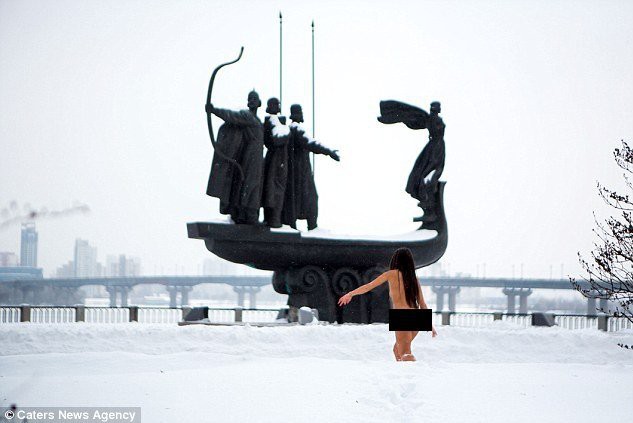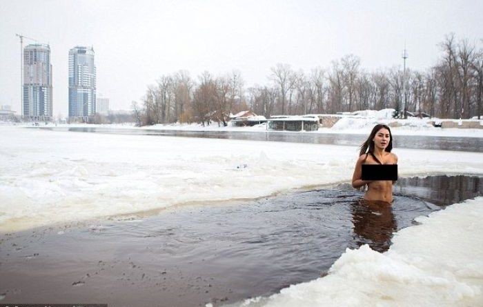 32-річна киянка Інна Володимирська щонеділі купається у Дніпрі після бігу по засніжених берегах річки. Робить вона цю процедуру абсолютно оголеною. Температура однієї з найхолодніших річок в Європі регулярно падає до -9 градусів, але українку це анітрохи не бентежить.