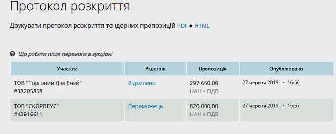 У другому тендері на закупівлю лляних вишиваних рушників перемогло ТОВ "ТК-Домашній Текстиль" з найнижчою ціною 711 тисяч гривень за 200 рушників (по 3,6 тисячі за штуку).