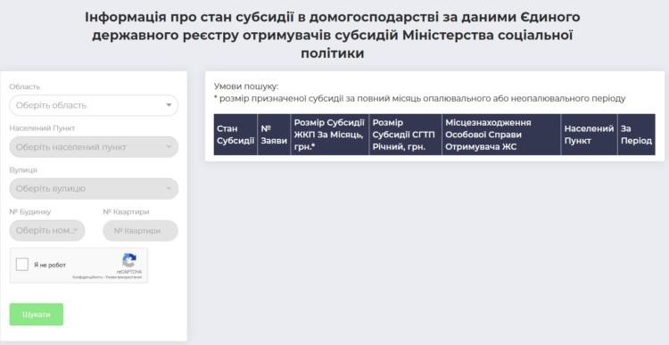 Працює простий і зручний сервіс в мережі Інтернет, що дозволяє швидко дізнатися чи діюча субсидія і який її розмір. Споживачу варто лише ввести необхідну адресу.