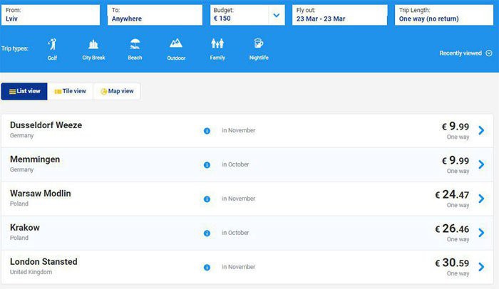 Ірландський лоукостер запустив продаж квитків в Україні. Ціни починаються від €10. У середньому квиток коштуватиме нижче €40. Вильоти почнуться з жовтня 2018 року.