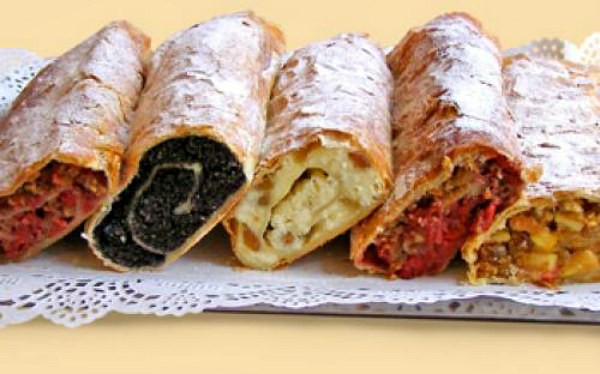 Віденський штрудель з яблуками, маком, щавлем і бананами