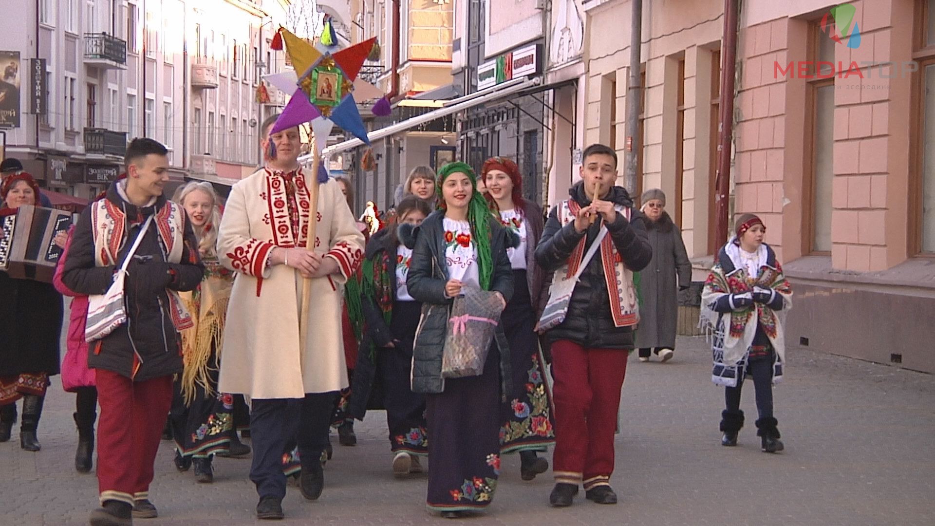 Колядники вітають городян та гостей міста з Різдвяними святами. На зібрані гроші хочуть купити для шкільного колективу нові костюми, пише "МедіаТор".