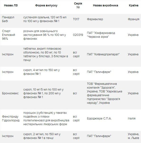 Таке рішення відомство прийняло у четвер, 23 травня. До списку заборонених препаратів потрапили ліки виробництва України, Франції, Польщі та Італії, а саме:
