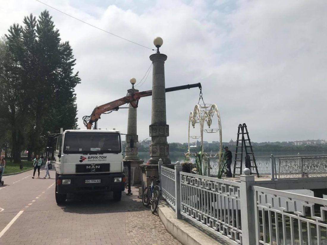 З парку імені Тараса Шевченка, у Тернополі сьогодні демонтують металеве серце - конструкцію, яку встановили комунальники як елемент для озеленення міста.