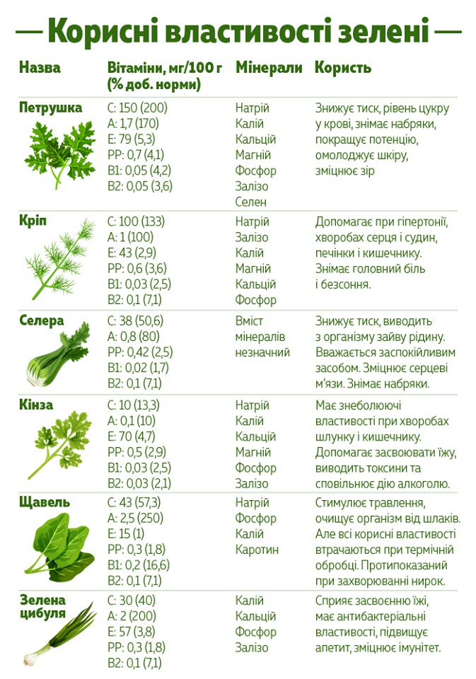 Збережіть собі! Корисні властивості зелені (ІНФОГРАФІКА)