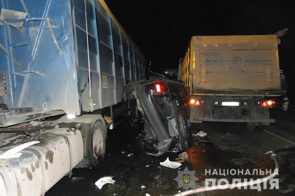 Жахлива аварія на Тернопільщині: автомобіль затиснуло між вантажівками (ФОТО)