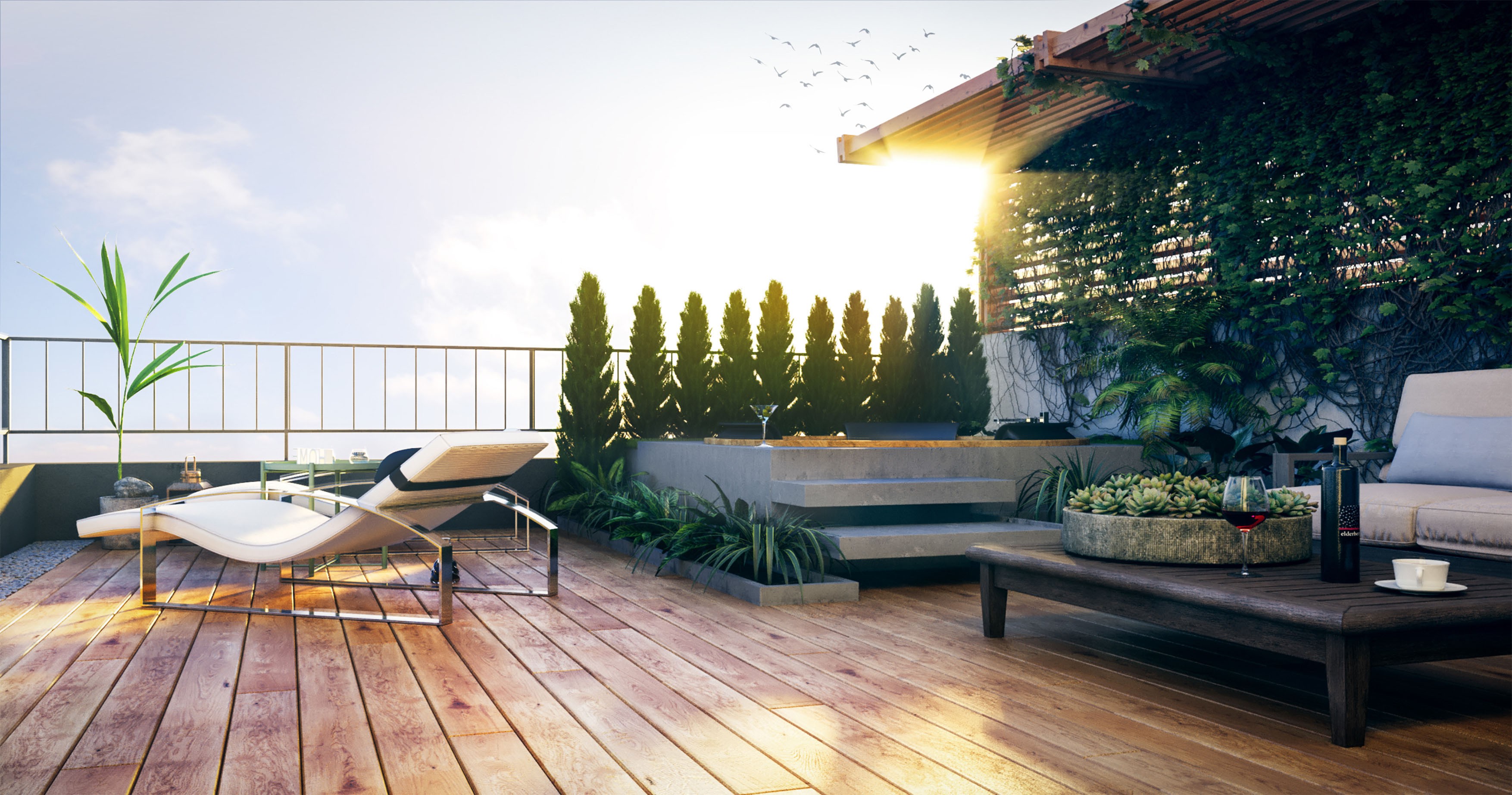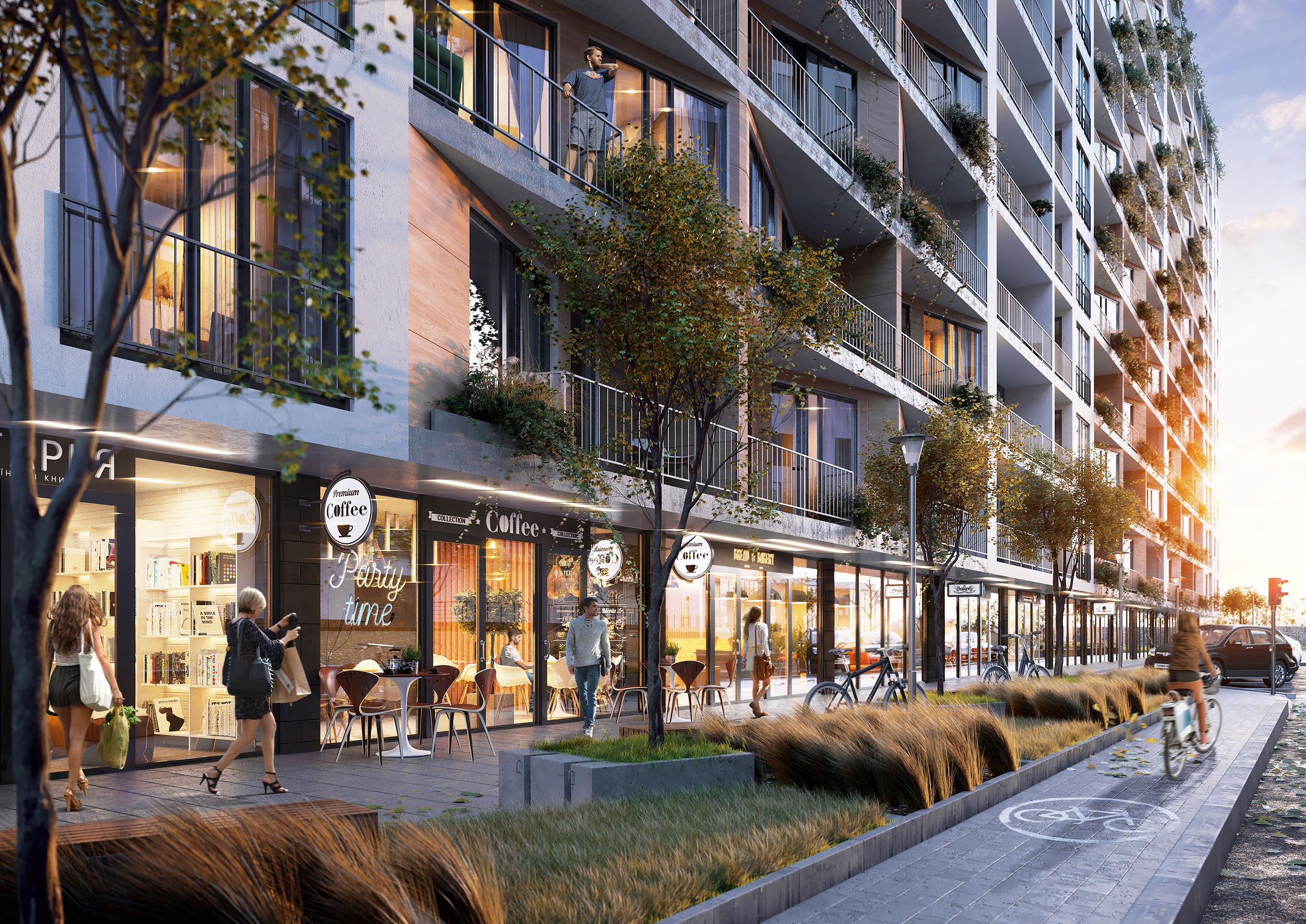 Для отримання надзвичайного відчуття простору мешканцям достатньо буде лише піднятися на дах будинку та отримати захоплення від виду, який відкривається на місто. Горизонт, світанки, заходи сонця та аромат запашної кави – все це Ви смакуватимете на терасах Щастя!